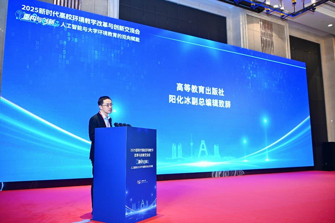 阳化冰首先回顾了系列交流论坛的发展历程。论坛自2006年创办以来,已成功连续举办了十八届,吸引数以万计高校教师参与,成为推动环境学科教学改革的重要平台。他指出,高教社正全力推进人工智能与课程教学融合,建成教育教学大模型公众服务平台,上线近1000个多学科多场景教学智能体,开发绿色环保、低碳领域优秀教材,为环境类专业建设提供资源支撑。